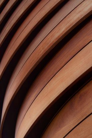 A warm, organic take on architectural abstraction, this photograph highlights the sweeping curves of layered wood panels. The rich grain patterns and gentle arcs create a soothing rhythm, blending natural texture with sculptural form. Minimalist yet striking, the image brings warmth, movement, and a touch of modern craftsmanship to any space—perfect for interiors inspired by nature, design, or contemporary art.