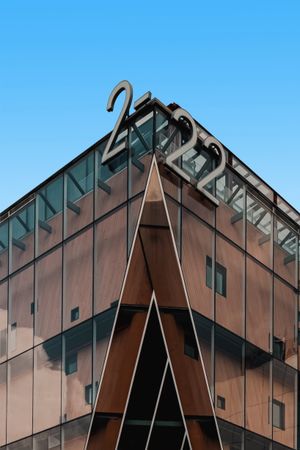 Glass, steel, and wood meet at a perfect point in this contemporary architectural study. Shot from below, the composition emphasizes precision and balance while subtle reflections soften the structure. A refined statement piece for modern homes, offices, and design-led spaces.